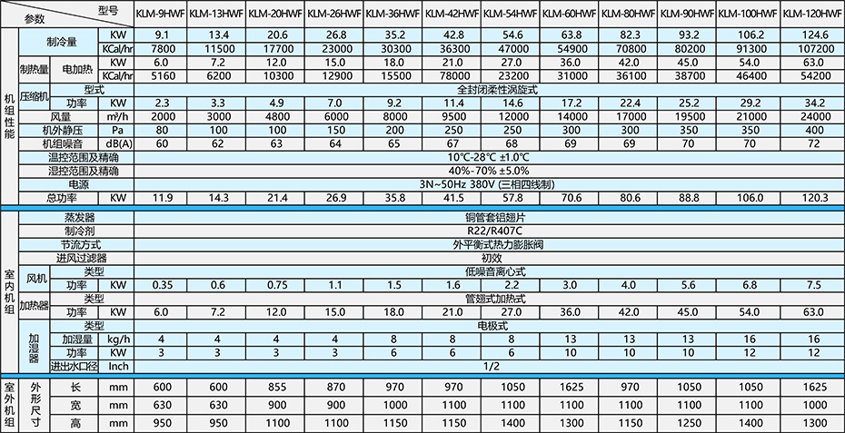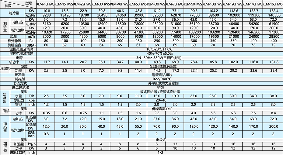 水冷機(jī)組參數(shù)表